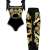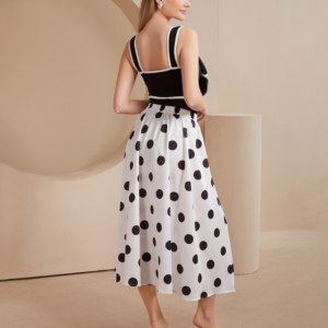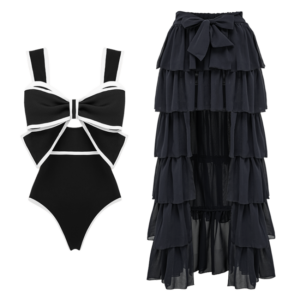 Black and White Bow Decor One Piece Swimsuit and Skirt Flaxmaker