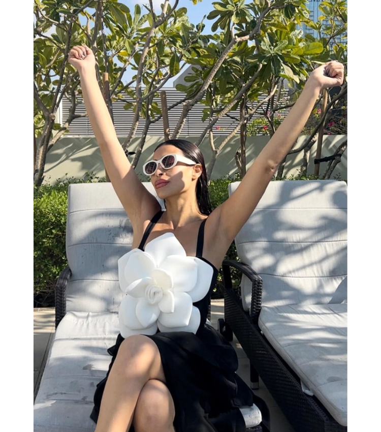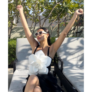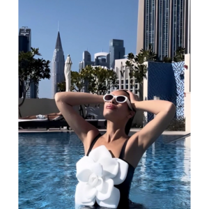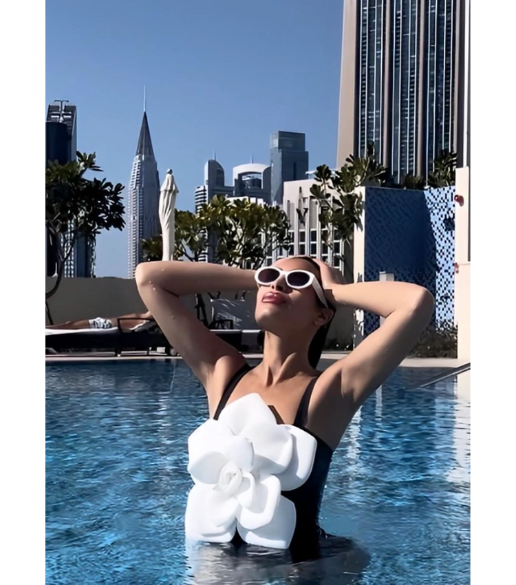 Luxury hotel pool vibes! This swimsuit is absolutely stunning. The 3D flower decor is so intricate and beautiful....