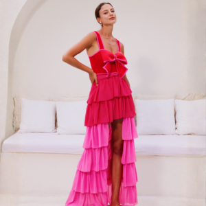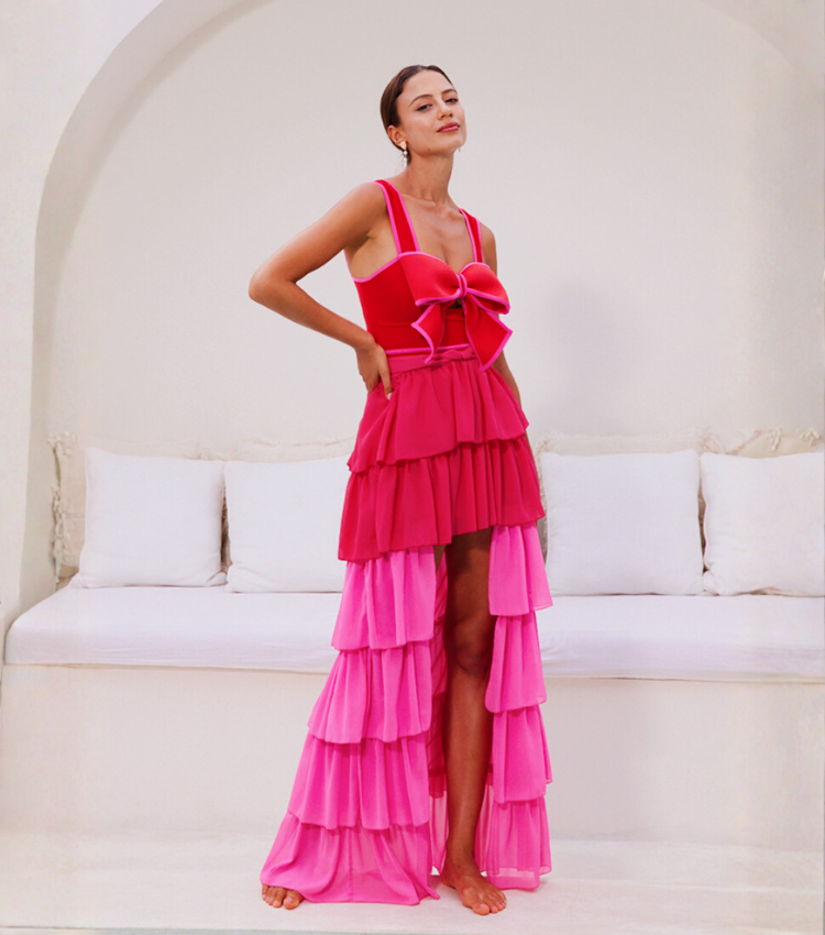 Bow Front Cut Out Color Block One Piece Swimsuit and Skirt Flaxmaker