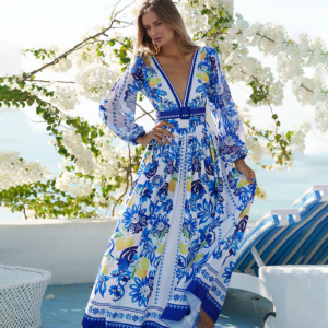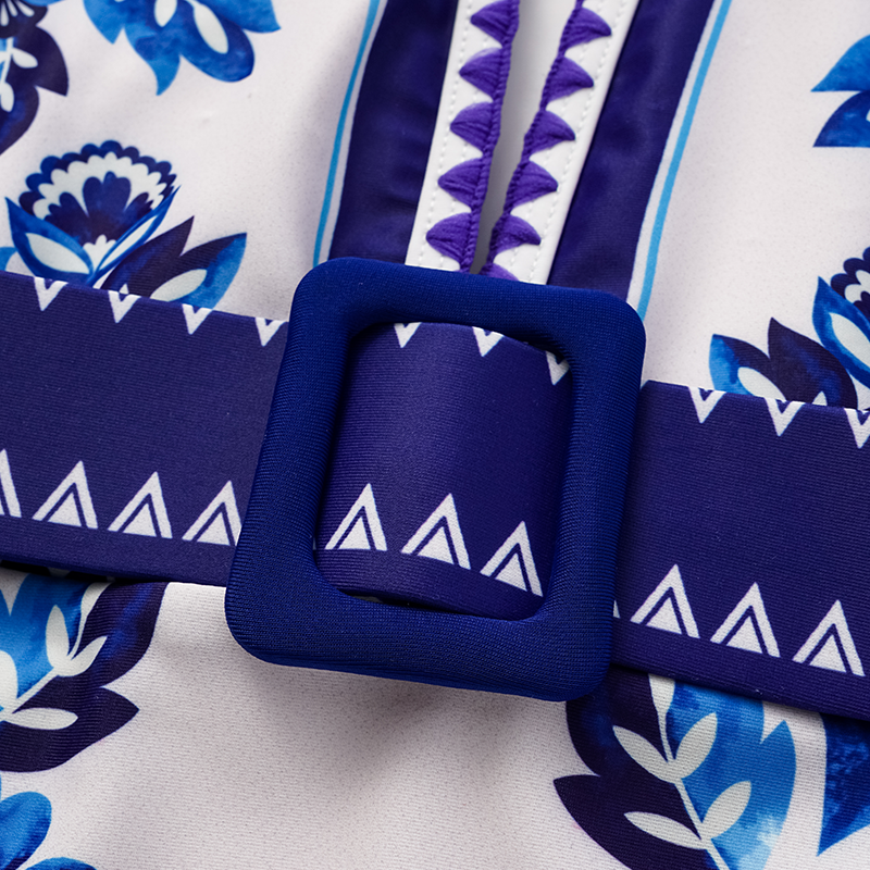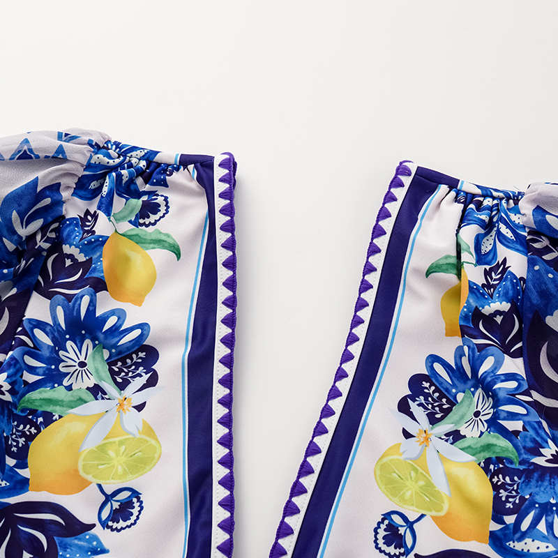 Long-sleeves Lemon and Creative Pattern Print One Piece Swimsuit and Skirt