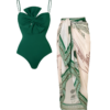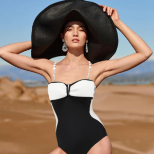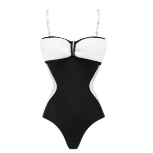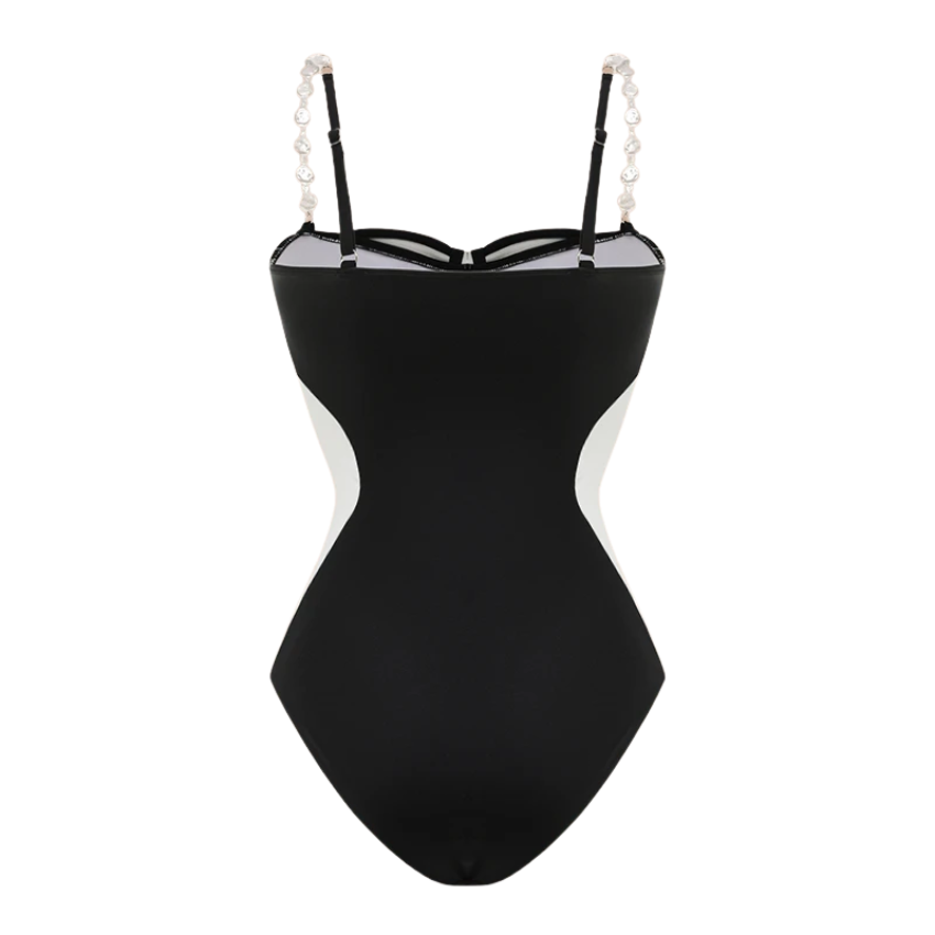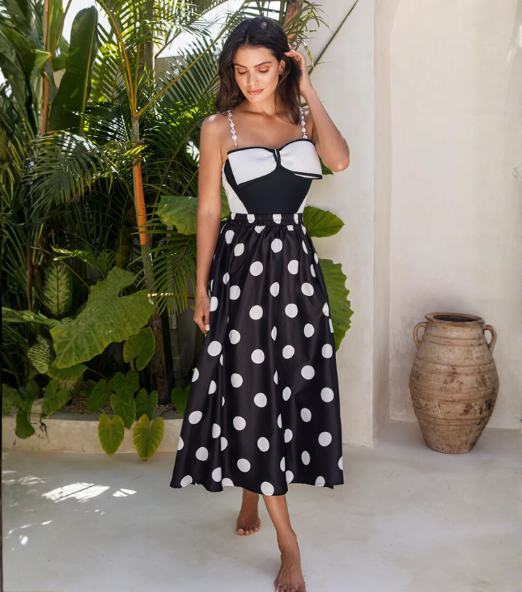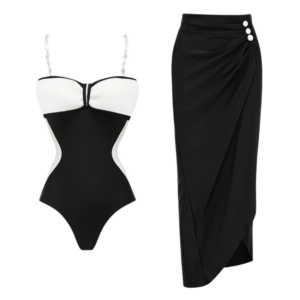 Black and White Bow Decor One Piece Swimsuit and Skirt Flaxmaker
