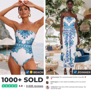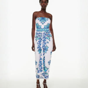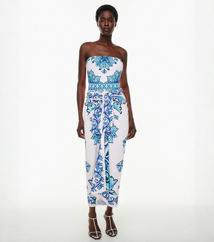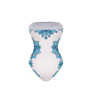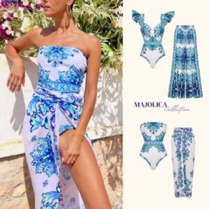 Off Shoulder Majolica Print One Piece Swimsuit and Sarong or Pants