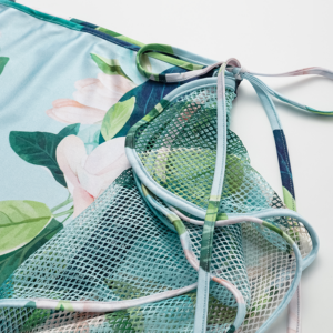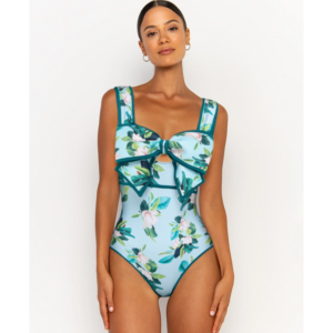 Bow Decor Mangnolia Print One Piece Swimsuit and Skirt