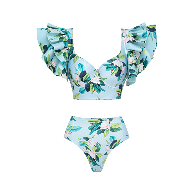 Perfect beach look! The flower bikini is so cute and the high waist design is very flattering. Wore...