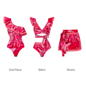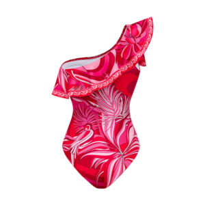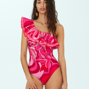One Shoulder Ruffle Printed One Piece Swimsuit and Sarong or Shorts