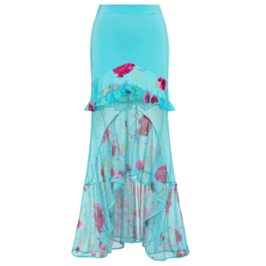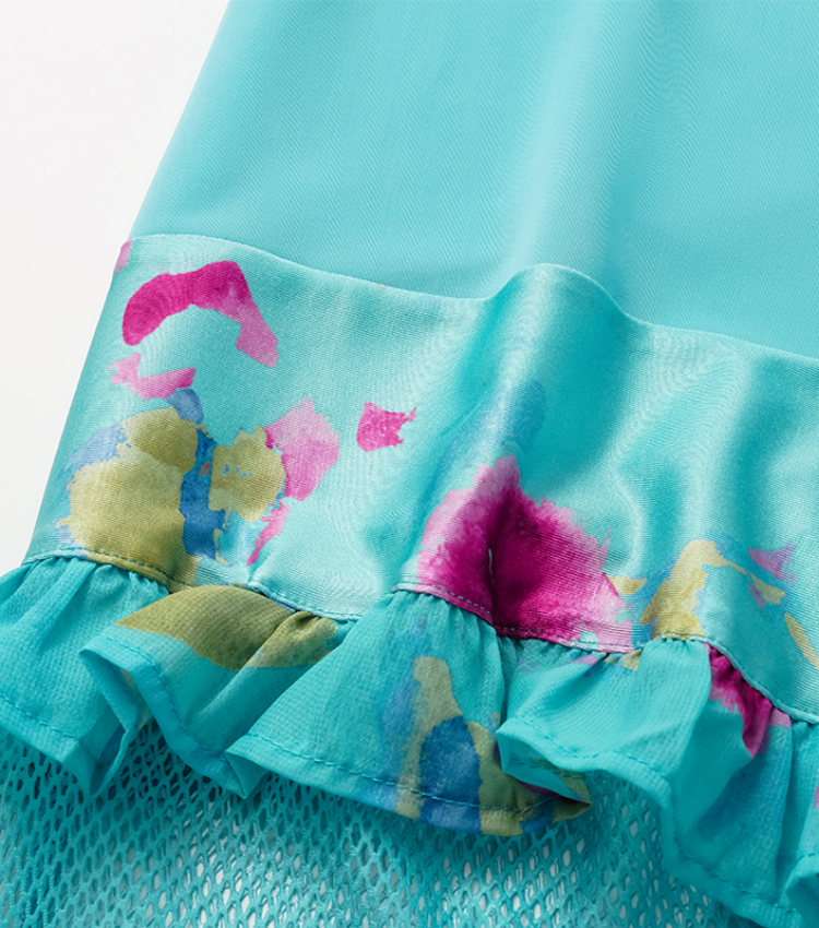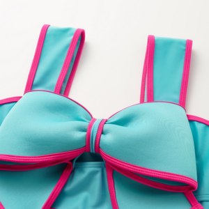 Bow Decor Blue and Pink One Piece Swimsuit and Skirt