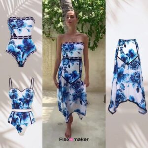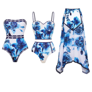 Floral Series Pattern Print One Piece Swimsuit and Skirt