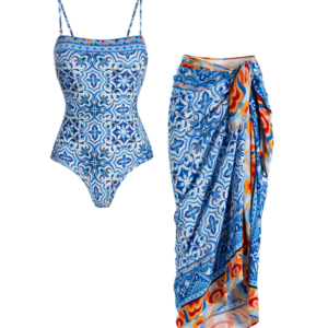 Printed One Piece Swimsuit and Sarong