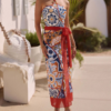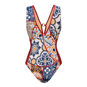 V Nack Printed One Piece Swimsuit and Sarong Flaxmaker