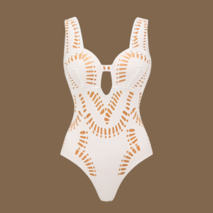 Laser White Hollow Out One Piece Swimsuit and Skirt