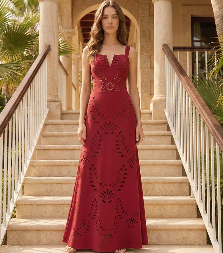 Laser Hollow Out One Piece Swimsuit and Skirt