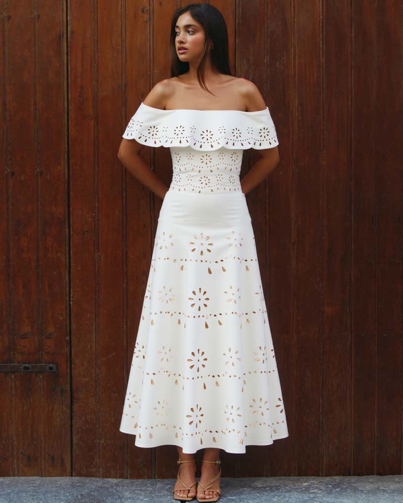 Laser Three Pieces Set Hollow Out One Piece Swimsuit and Skirt