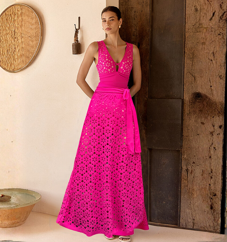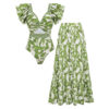 Laser Hollow Out One Piece Swimsuit and Skirt