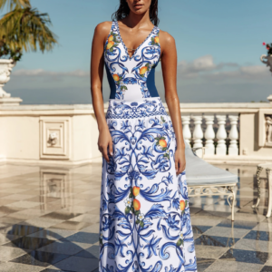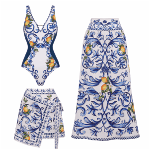 V Neck Lemon Printed Swimsuit Set(s)