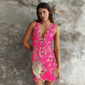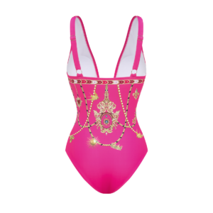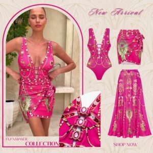 Hollow Metallic Pattern Printing One Piece Swimsuit and Skirt