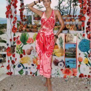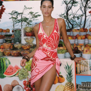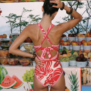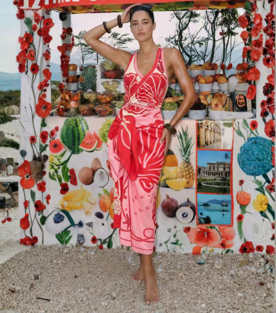 Pink Contrasting Color With Seashell Print Swimsuit Set(s)