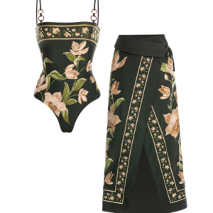 Flaxmaker Flower decor Printed One Piece Swimsuit and Sarong