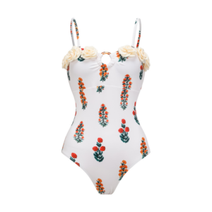 Flaxmaker Flower decor Printed One Piece Swimsuit and Sarong